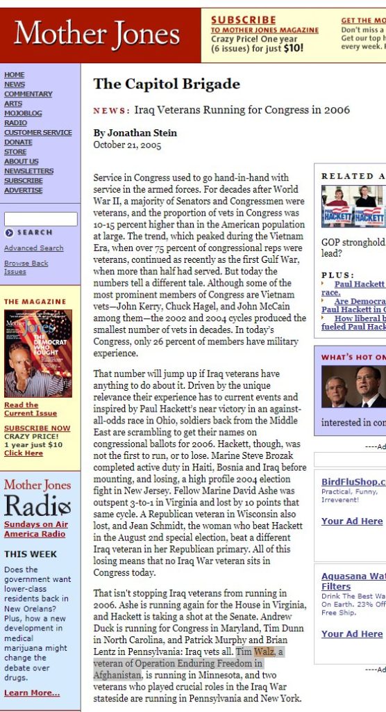 And after Democrats took control of Congress in the 2006 midterms, then-Speaker Nancy Pelosi lauded Walz for his time in combat saying “we appreciate his service on the battlefield.”